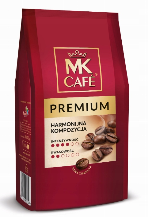 MK Cafe Premium to wyśmienita kompozycja ziaren Arabica (100%) z renomowanych kolumbijskich i brazylijskich plantacji. Wyróżnia się harmonijnym bukietem z wyczuwalnymi nutami ciemnej czekolady, migdałów i pomarańczy. Kropką nad i są subtelne akcenty słodyczy, lekko przełamane umiarkowaną kwaskowatością. To kawa, która potrafi zachwycić. Jej wysoka jakość i doskonały aromat sprawiają, że cieszy się uznaniem profesjonalnych baristów. Palona w stopniu średnim. O niskiej zawartości kofeiny